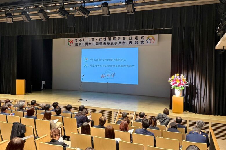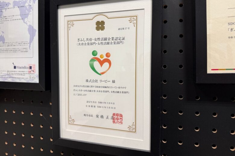 令和7年度(2025年度)の「ぎふし共育・女性活躍企業認定式」と「岐阜市男女共同参画優良事業者表彰式」に参加しました。会場は「みんなの森 ぎふメディアコスモス」。各社の代表者が集まり緊張と期待に包まれた式典が始まりました。弊社リーピーは令和元年度に初めて認定を受けており、本年度は2度目の更新認定となりました。