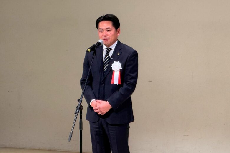 柴橋市長の挨拶と認定式