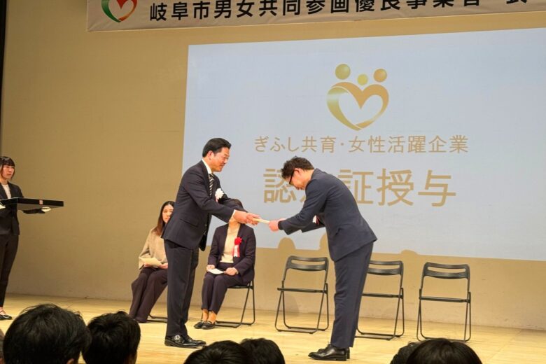 令和7年度ぎふし共育・女性活躍企業認定式と男女共同参画優良事業者表彰式に参加しました