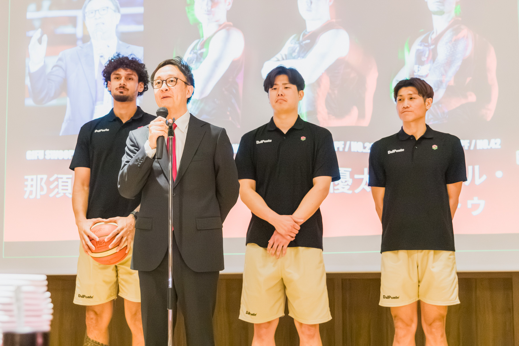 那須社長、ダニエル・フォトゥ選手、増本優太選手、田中昌寛選手です。