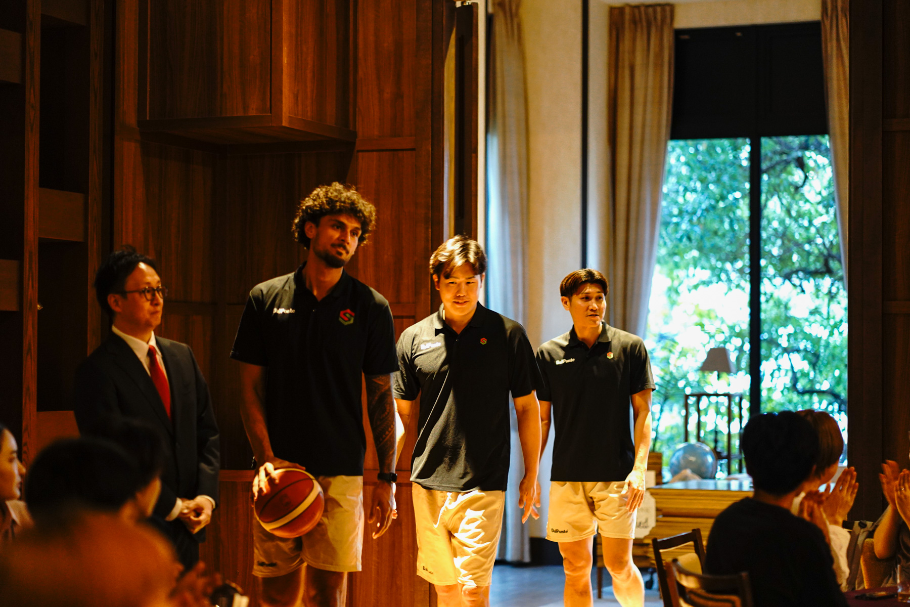 会場の扉が開くなり、「わーっ!」と歓声が。学生時代バスケ部に励んでいたメンバーや、現コーチを務めるメンバーもいるため、感動ひとしおといった空気感に包まれました!