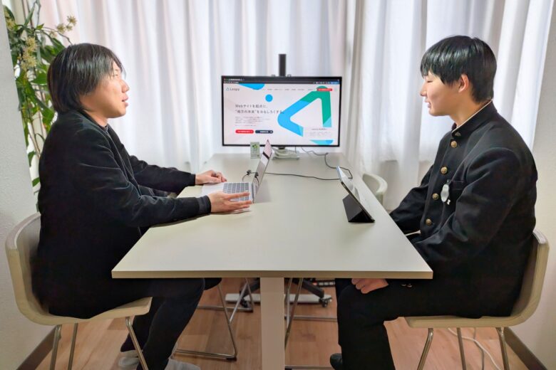 岐阜市立長良中学校の2年生男子生徒1名が、リーピー本社へ職業体験に来てくれました。サイトを見て「DXデザイン部が気になる」「Webサイトのデザインがすごい」と感じていただいていたため、午前中に制作各部署の仕事を見学してもらい、午後は特に興味を持っていたDXデザイン部の業務を中心に体験してもらう一日となりました。