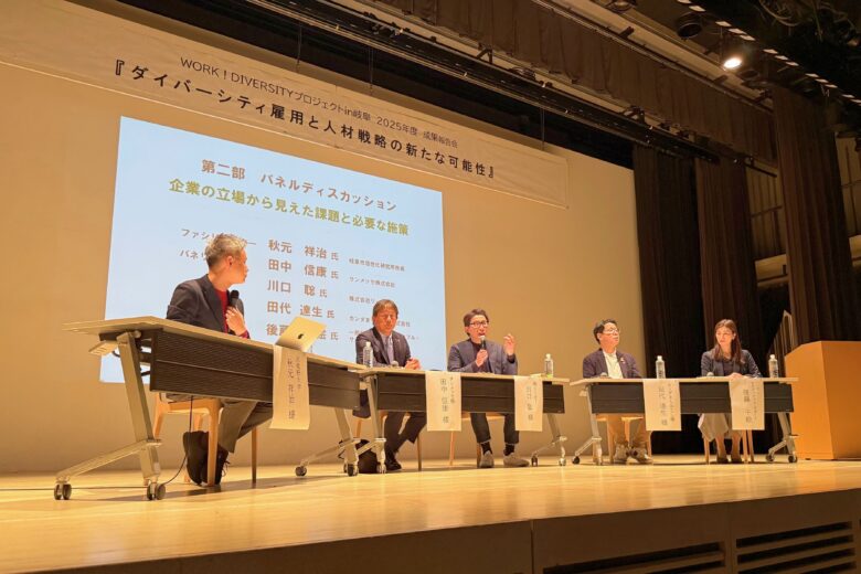 テーマは『ダイバーシティ雇用と人材戦略の新たな可能性』。労働人口が減少する中、多様な働きづらさを抱える方々が活躍できる仕組みづくりを地域でどう実現するかを議論するイベントです。当社は雇用施策検討会の参加企業として本プロジェクトに携わっており、代表の川口が第二部のパネルディスカッションに登壇しました。